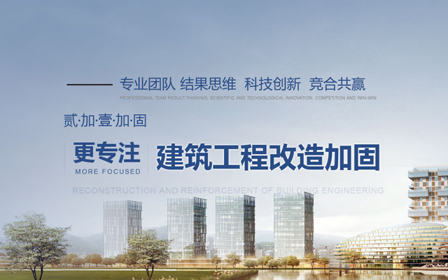 貳加壹 解決方案專業(yè)從事建筑工程改造加固技術研究及相關產(chǎn)品開發(fā)的 產(chǎn)業(yè)的公司 提供專業(yè)的加固咨詢、加固方案設計、工程施工服務 。